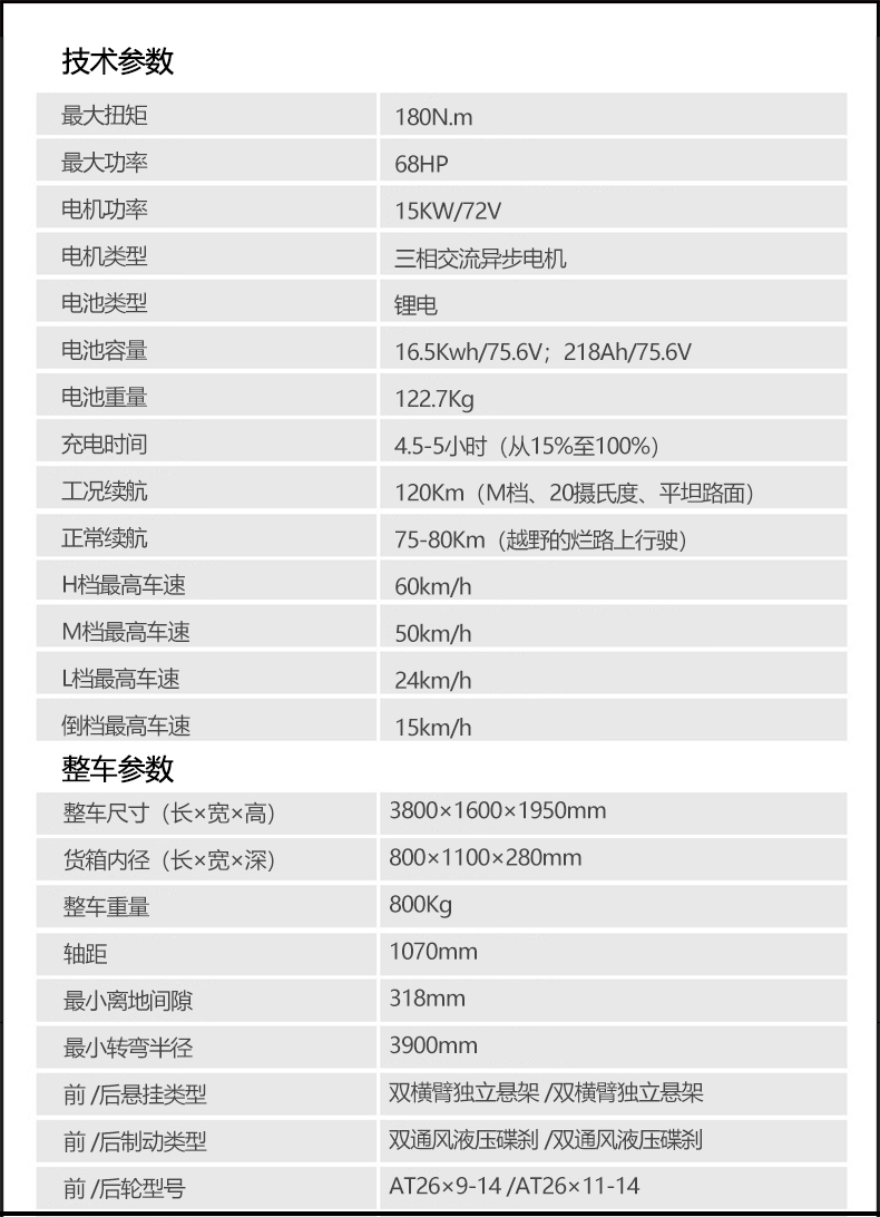整车尺寸:3800×1600×1950mm